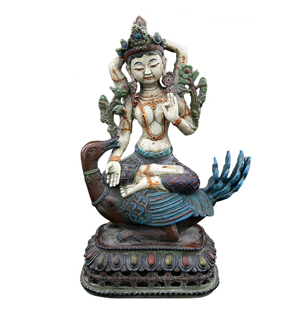 品相完好,体态舒展,铜质典型,开脸生动,温柔低视的双眼,尤其是五官的刻画展示出藏而不露的神秘笑意,题材也是极其受人喜爱。保存完好,藏传佛像很多是座着的,象这样立佛还是很少见的,有很高的收藏价值跟欣赏价值。