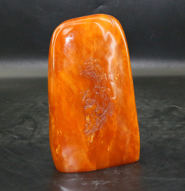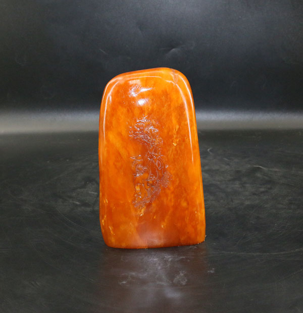 中国印石中有寿山石、青田石、昌化石和巴林石四大国石四大国石以寿山石为首而寿山石又以田黄为瞻。田黄是产于福建寿山的寿山石作为印章石材中的是我国特有的“软宝石”只在寿山的一块不到一平方公里的田中出产因色相普遍泛黄又产在田里故称田黄石。其材质温润凝腻在软质雕刻石中居第一品。明、清两朝均被作为贡品献入皇宫被雕刻成御用玺印和摆件故田黄石又被尊为“石中之王”、“石帝”。