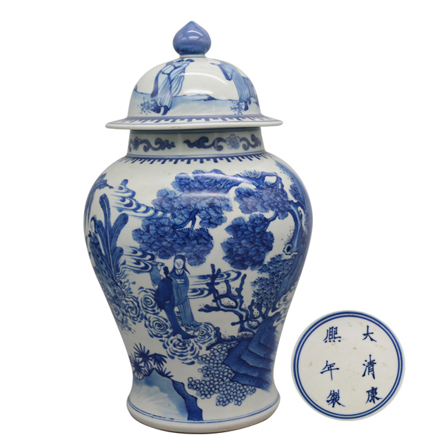 青花人物故事纹将军罐