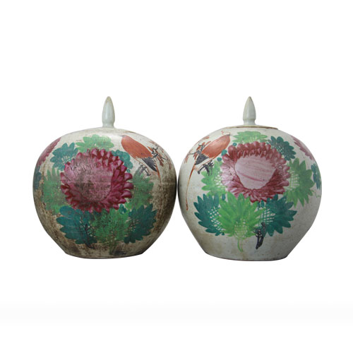 粉彩花鸟西瓜罐
