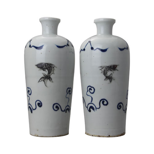 明青花釉里红三尾鱼媚瓶