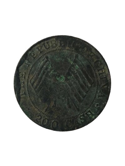 民国四川二百文双旗币,藏品经历了无穷岁月但纹路依然清晰可见。钱币正面图案外围上方是“中华民国二年”六个字, 外围下方是“四川造币厂造”内围图案是稻穗组成的 嘉禾纹,中央竖写“贰百文”。反面是双旗,藏品虽然经历了无穷 岁月,但纹路依然清晰可见,上面的锈迹也见证了其历史的积淀。此民国四川二百文双旗币铜币材质珍贵也具有一定 的保值和升值空间,将成为收藏投资就领域中的一匹黑马