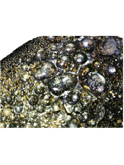 玻璃陨石为半透明的玻璃质体,有微弱磁性,颜色为墨绿色、绿色,淡绿色,棕色,褐色,深褐色,还有少见的朱砂色。比重为2.6至3.0左右。玻璃陨石是在高空、高温、高压和高速下形成的,所以它有明显的形成特证:内部高纯度无杂质,通体布满致密的小气泡,外部有融壳,融壳上有流纹,外部和融壳下有时会产生大的气印。