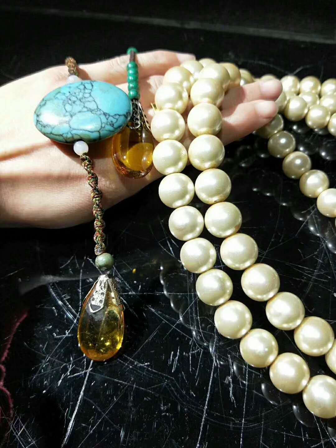 皇帝朝珠用东珠,祀天以青金石为饰,祀地用蜜珀珠,朝日用珊瑚珠,夕月用绿松石珠,均明黄绦。