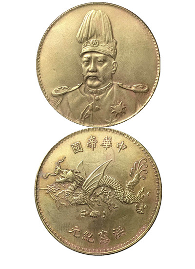 中华帝国洪宪纪元袁世凯像飞龙纪念样板币,此枚样币为铜制样板币,迷人的巧克力色环形包浆,拍品刻模深峻,人像五官清晰,栩栩如生,龙鳞饱满立体,呼之欲出,堪称中国近代机制币经典之作;反面包浆色较暗。面模压袁世凯身着戎装的半身像,背面模压飞龙纹饰,上方镌刻“中华帝国”,下方镌刻“洪宪纪元”。 袁世凯曾于1915年12月接受帝王称号,改国号“中华帝国”,改1916年为“洪宪元年”,并拟于1916年元旦加冕登基,此银币应为其加冕登基的纪念币。它是见证袁世凯复辟帝制等历史事件的重要的实物资料。袁世凯窃取临时大总统后,复辟称帝,下令于 1916 年元旦起,废除民国年号,改为中华帝国洪宪元年,并由天津造币厂铸造此币。该币由国外雕刻师乔治氏主持铜板雕刻,铸造精美,为中国近代铸币史上之精品。 洪宪”是袁世凯1916年称帝时的年号。袁世凯于1915年12月宣布恢复帝制,建立中华帝国,并改元洪宪。1916年1月1日,登皇帝位,1916年3月22日,内外交困,被迫宣布撤消帝制,恢复民国。袁世凯复辟帝制是历史的倒退,是中国近代史上的大事。袁世凯称帝仅83天,在中国历史上,极其短暂。飞龙银币正是这一特殊历史事件的重要见证!~由于王朝的短暂当年铸造的洪宪飞龙银币数量并不多加之又是名家雕刻(乔治)诸多原因成就了今天飞龙银币尊贵的价值所在!